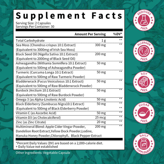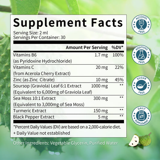 Soursop Graviola Liquid Drop, Soursop Leaves Extract with Sea Moss & Turmeric, Soursop Bitters Liquid for Cell Support & Regeneration, Liver, Relax, Immune and Antioxidant Support, 2 Fl Oz