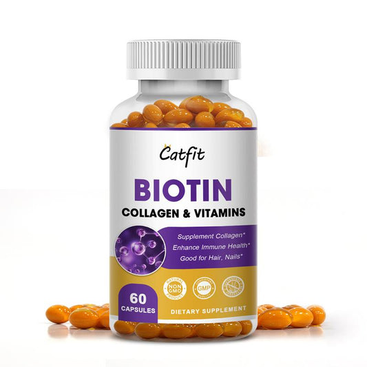 Catfit Biotin Capsules with Collagen and Vitamins for Hair Skin & Nails Care Growth Metabolism Support for Women and Men