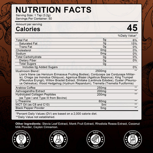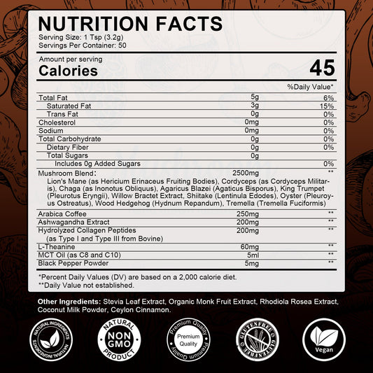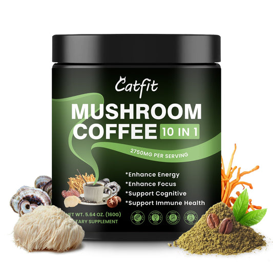 Mushroom Coffee Alternative Mix 2500mg 10-in-1,Supports Memory Cognition, Clarity lmprove Mood & Enhance Focus Brain and lmmune Supplements - Instant Mushroom Coffee Powder