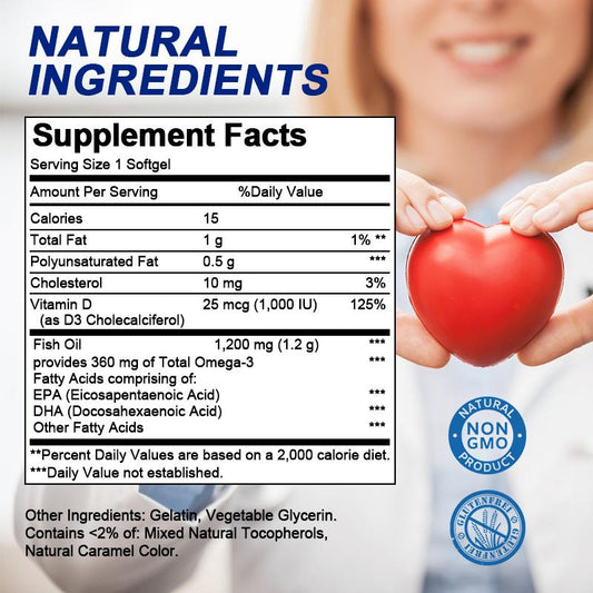 Catfit Omega3 Fish Oil Capsules EPA&DHA Support Heart Blood Vessels Vitamin D3 Supplement 120 Capsules