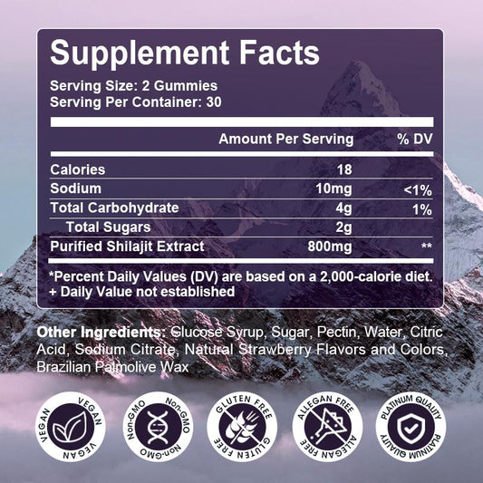 Strawberry Flavor 60pcs Shilajit Gummies 800mg, Shilajit for Men & Women, 85+ Mineral Formula, Fulvic Acid Supplement, Shilajit Resin Supplement, Energy, Immune Support and Focus