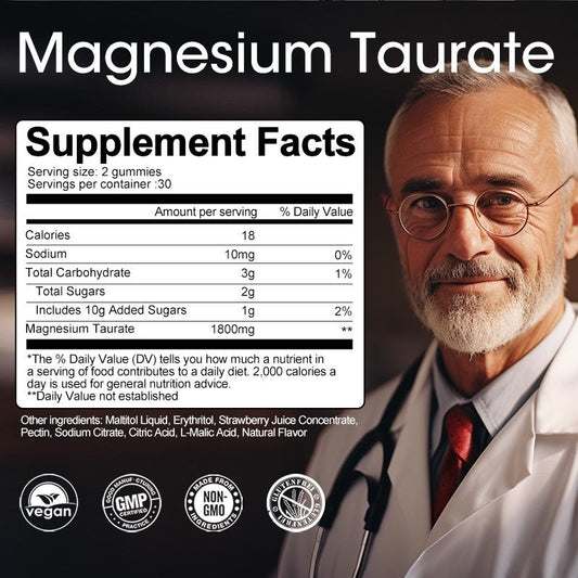 Magnesium Taurate Gummies 60 Caps 1800mg Enhanced Absorption for Restful Sleep, Relaxation, Positive Mood, Wellness, GABA Levels, Cardiovascular Health,For Women and Mens