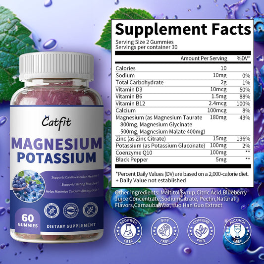 2 Packs Calcium Magnesium Potassium Complex Supplement Zinc Gummies Blueberry Flavor