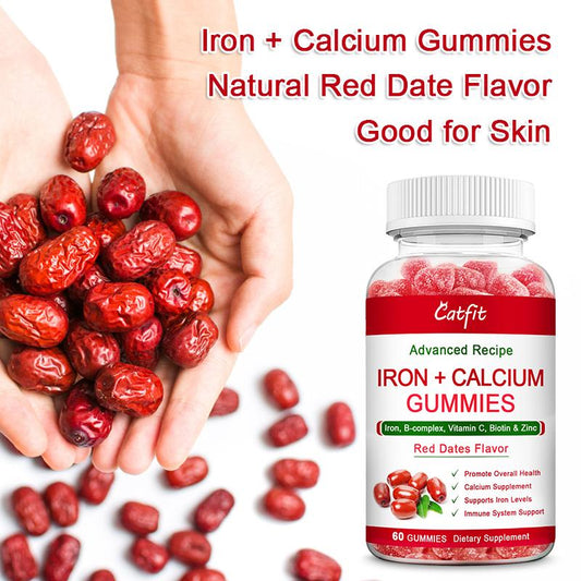 Catfit Red Date Gummies Iron Calcium Gummies Supplement with Vitamin C, A, Vitamins B Complex for Women, Kids & Adults Supports Energy