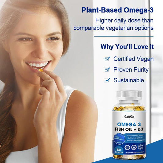 Catfit Omega3 Fish Oil Capsules EPA&DHA Support Heart Blood Vessels Vitamin D3 Supplement