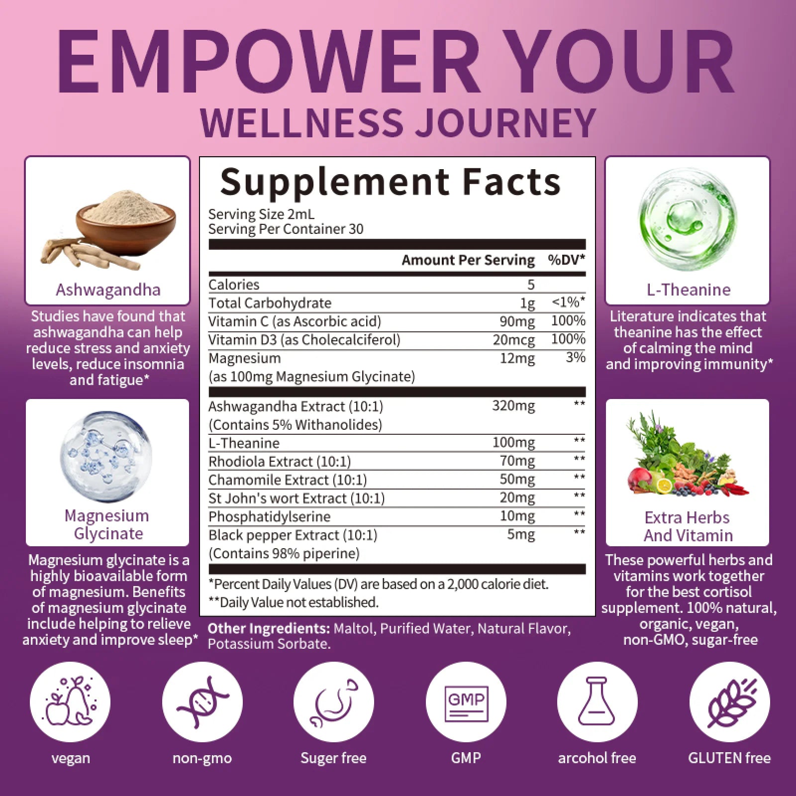 - Effective Formula for a Healthy Life: This product offers a 30-day supply, requiring only 2 ml a day ,maintain cortisol balance, energy and vitality throughout the day
